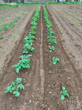 馬鈴薯に追肥して土を寄せました。