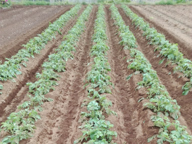 馬鈴薯に追肥して土を寄せました。