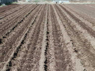 畝に鶏ふん堆肥・牛ふん堆肥・化成を