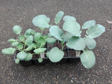 ブロッコリーと芽キャベツの苗を植えました。