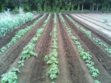 馬鈴薯に追肥してカルチで土を寄せました。