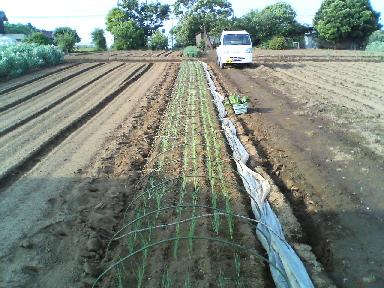 晩葱のトンネルを取って追肥しました。