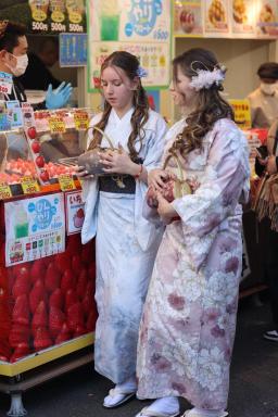 着物姿の人が沢山いて