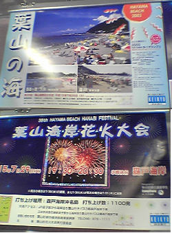 今日、当地を走る京浜急行の電車に乗ったら「葉山の海」と花火大会の