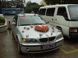 こんな飾りつけの車に新郎新婦が乗って行きます。