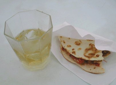 花火を待つ間はテキーラとタコス、フラットのタコスは絶品!