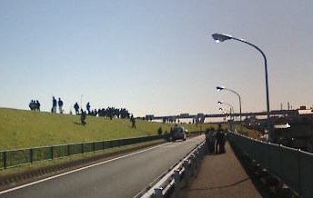 車に乗ってるスーパーさくらのおばさんに土手の生徒が